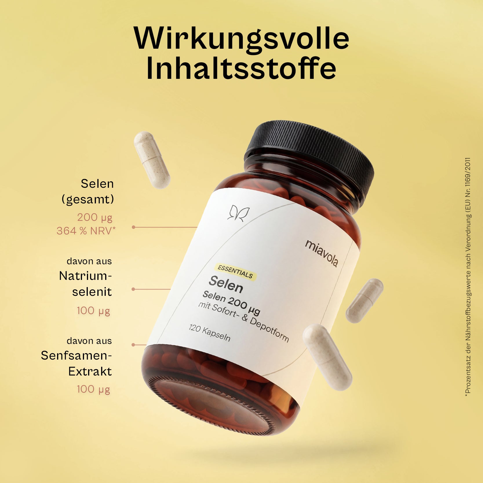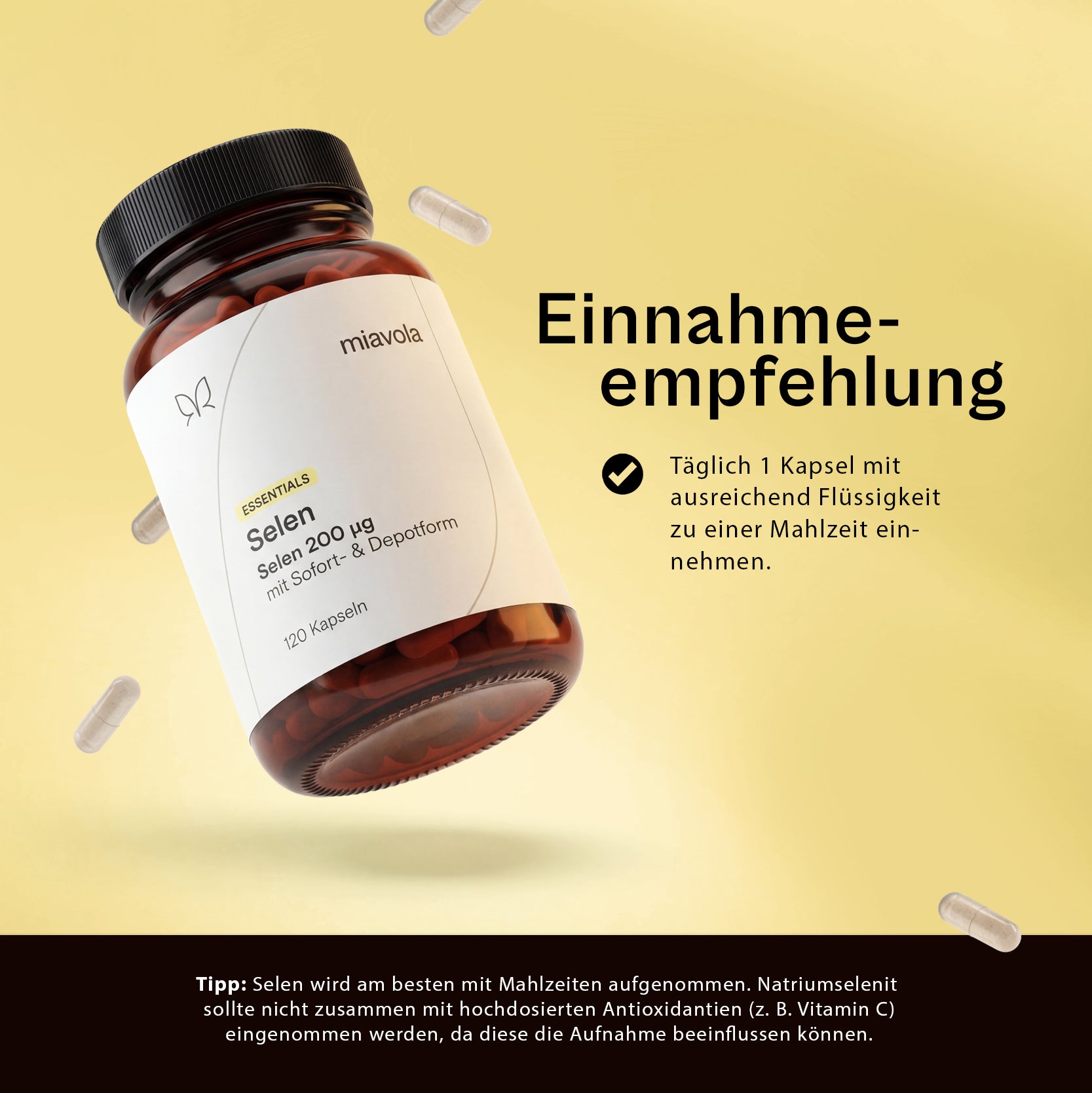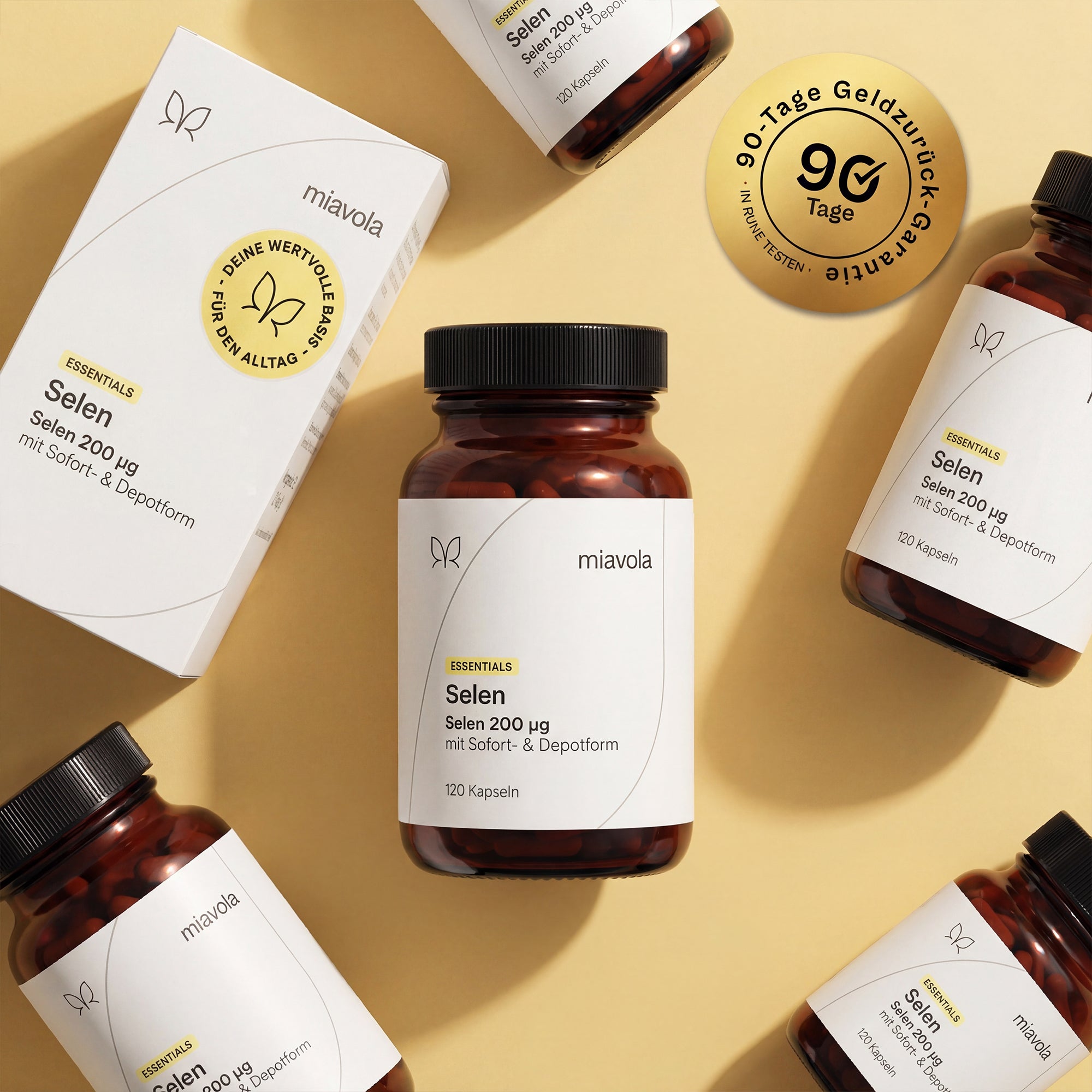 Anorganisches Selen (Natriumselenit) wird sofort im Körper verfügbar, hat aber keine Depotfunktion. Pflanzliches Selen aus Senfsamen wird langsamer freigesetzt und sorgt für nachhaltigere Versorgung. Durch die Kombination profitierst du von beiden Vorteilen – wie bei einer abwechslungsreichen Ernährung.